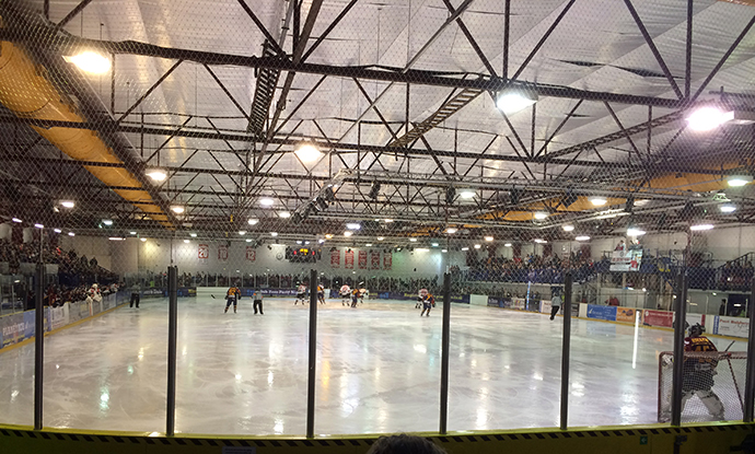 Stephen Matthews, Nathan Ormond and Ali MacPhee were the officiating trio and referee Matthews called the players to centre ice for the opening face-off.