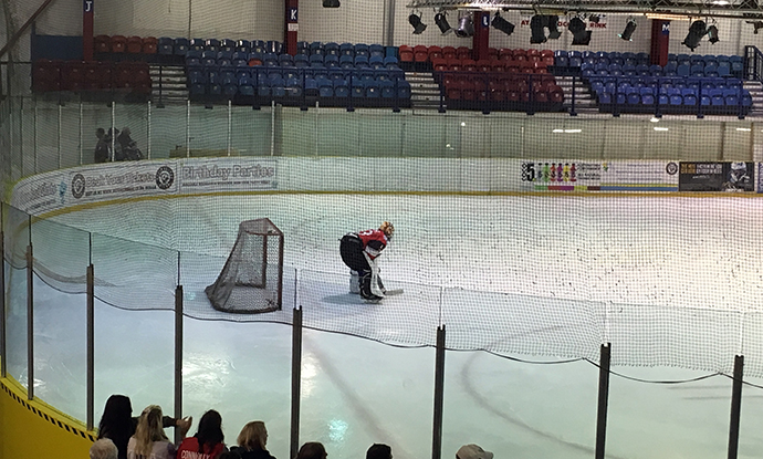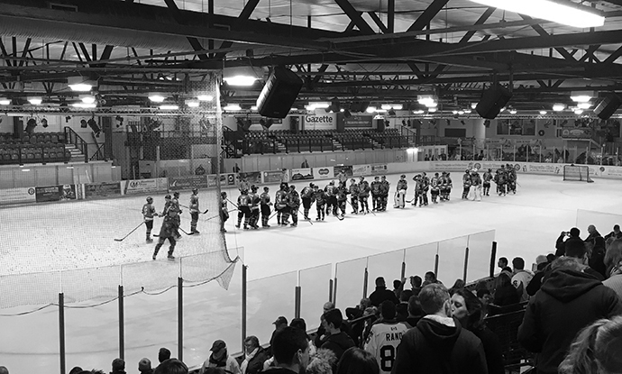 With the anthems and presentations done it was referee Paul Brooks who called the teams to centre ice and began the game.