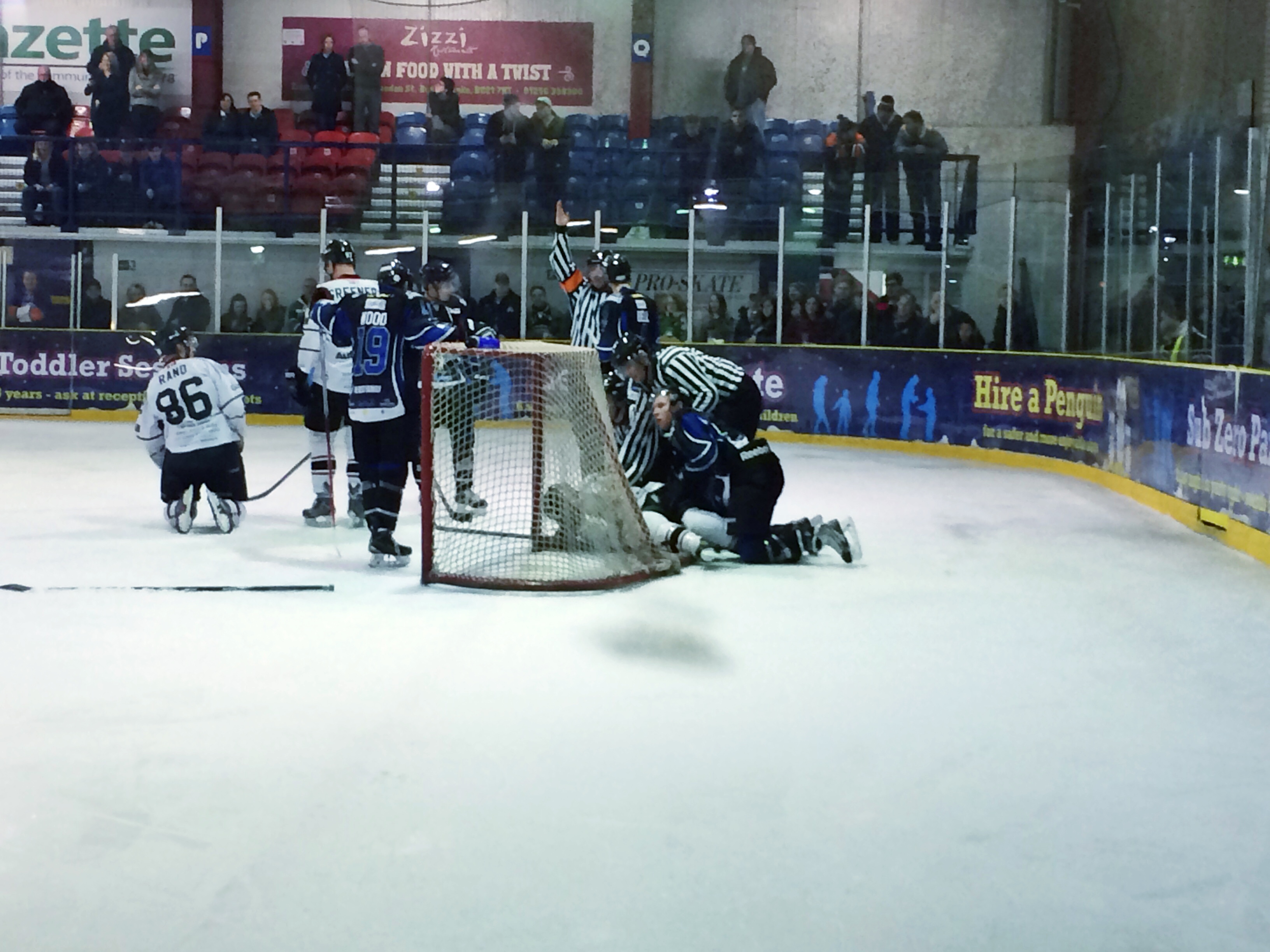 People have criticised Janis Auzins of the Phantoms for his on ice antics but on the occasions I’ve seen him at Basingstoke and Guildford I’ve not seen the net kicked off five times in a game!